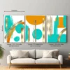 Add a touch of luxury, elegance, and vibrant energy to your walls with this Abstract Gold & Turquoise Canvas Wall Art – 3 Piece Set.