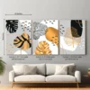 Black & Gold Leaf Abstract Canvas Wall Art – 3 Piece Set (22x30 inches each)